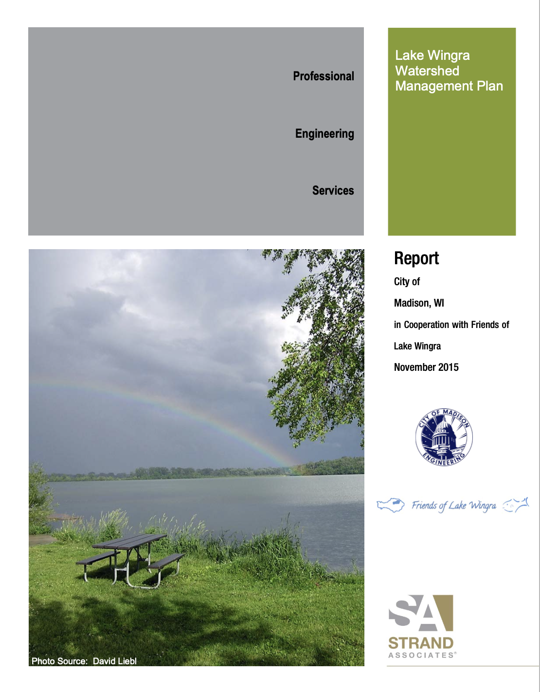 In June 2015, the 243-page Wingra Watershed Management Plan was released for public review and comment. The full document can be found at the following link on the City of Madison website: Wingra Watershed Plan – Strand Associates