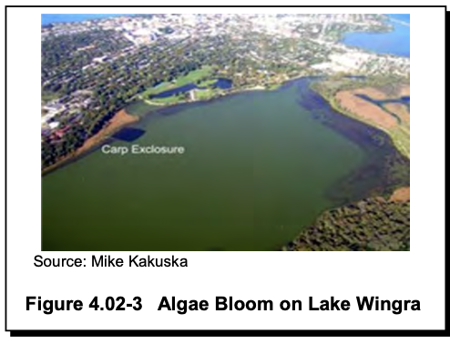 Other sources of phosphorus include windblown soil, pet wastes, eroding soils (e.g. stream banks, construction sites), lawns and lawn clippings. Storm water runoff readily carries the phosphorus into city storm sewers and to Lake Wingra. Over time, lawns will become less of a source as the number of years no phosphate lawn fertilizers are used.